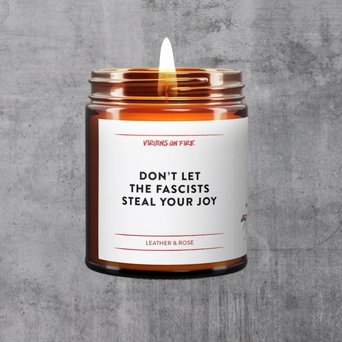 Don’t Let The Fascists Steal Your Joy Leather & Rose Scented Soy Wax Candle